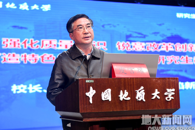 研究生培养单位有关负责人分别作专题发言。地球科学学院副院长冯庆来、资源学院副院长赵葵东、环境学院副院长柴波、经济管理学院院长杨树旺、马克思主义学院院长高翔莲分别从打造地质学拔尖人才培养高地、创新地质工科人才培养机制、研究生教育国际化、经管专硕教育的实践与展望、加强研究生思政课建设和马克思主义理论学科研究生教育等方面,进行了报告交流。各学院表示,要牢牢把握研究生培养方向,瞄准科技前沿和关键领域,提升导师队伍水平,完善人才培养体系,培养具有家国情怀的专业人才。