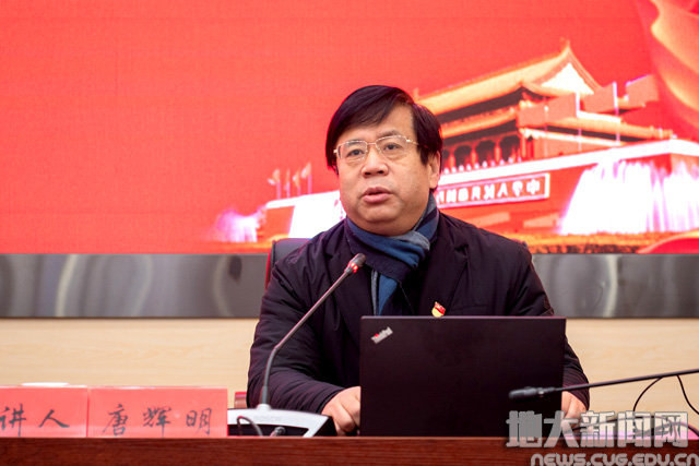 唐辉明作了题为《深入学习贯彻习近平新时代中国特色社会主义思想》的辅导报告。他从全球新一轮科技革命和产业革命加速发展的时代背景出发,结合教育信息化的发展及自身在开展科学研究中的具体案例,向学员讲解了十八大以来党带领全国人民所取得的巨大成就以及当前中国社会面临的深刻变革,阐明了习近平新时代中国特色社会主义思想的思想来源。他通过“八个明确”解读了习近平新时代中国特色社会主义思想的主要内容及其重大意义,并借用习近平总书记对青年人的寄语勉励在座学员爱国、励志、求真。