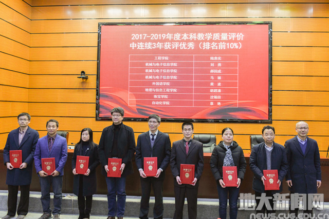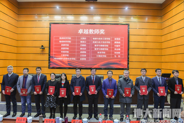 黄晓玫、王焰新、傅安洲、成金华、王林清、刘杰、刘勇胜和周爱国分别为龚一鸣颁发“教学卓越奖”、为戴光明颁发“湖北名师”、为帅琴颁发“卓越名师奖”、为王国庆等教师颁发“卓越教师奖”、为李占轲等教师颁发“卓越新秀奖”、为秭归本科地质实践教学团队等团队颁发“卓越团队奖”、为陆愈实等在本科教学质量评价连续3年排名前10%的教师颁发“教学质量优秀奖”、为徐亚军等教师颁发“十佳班主任”。