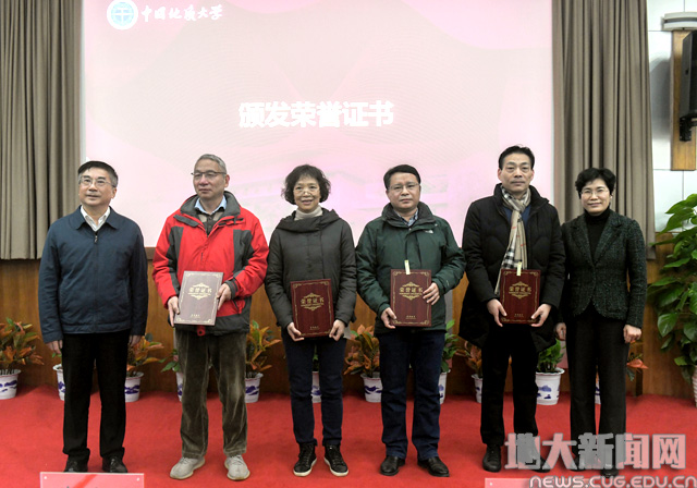 黄晓玫和王焰新为当选第二届学术委员会委员颁发聘书。