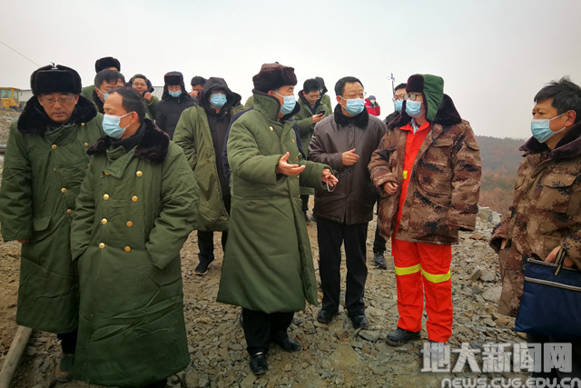 肖明国向国家应急管理部副部长黄玉洁,山东省委常委、副省长王书坚,山东省副省长汲斌昌汇报4号井钻井情况