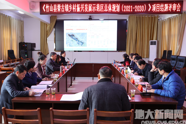 在秦古镇政府会议室,赖旭龙与竹山县相关人员听取了学校经济管理学院邓宏兵教授关于《竹山县秦古镇乡村振兴发展示范区总体规划(2021-2030)》项目的结题汇报。评审组认为,作为学校自设的科技扶贫项目,该项目对秦古镇小河村乡村振兴示范区发展的基础条件、目标定位、空间布局和重点任务等进行了全面、客观分析,符合国家实施乡村振兴战略的需要及秦古镇的发展实际,路径清晰,指导性强,同意结题。