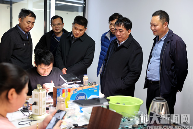 赖旭龙还观看了小河村绿松石及农副产品电商销售工作室主播线上销售绿松石情况。该工作室由学校驻村工作队2020年6月创建,已帮助当地村民销售绿松石及相关农副产品70余万元。他勉励工作队充分利用电商平台等销售渠道,帮助当地村民增收致富、产业提质增效。