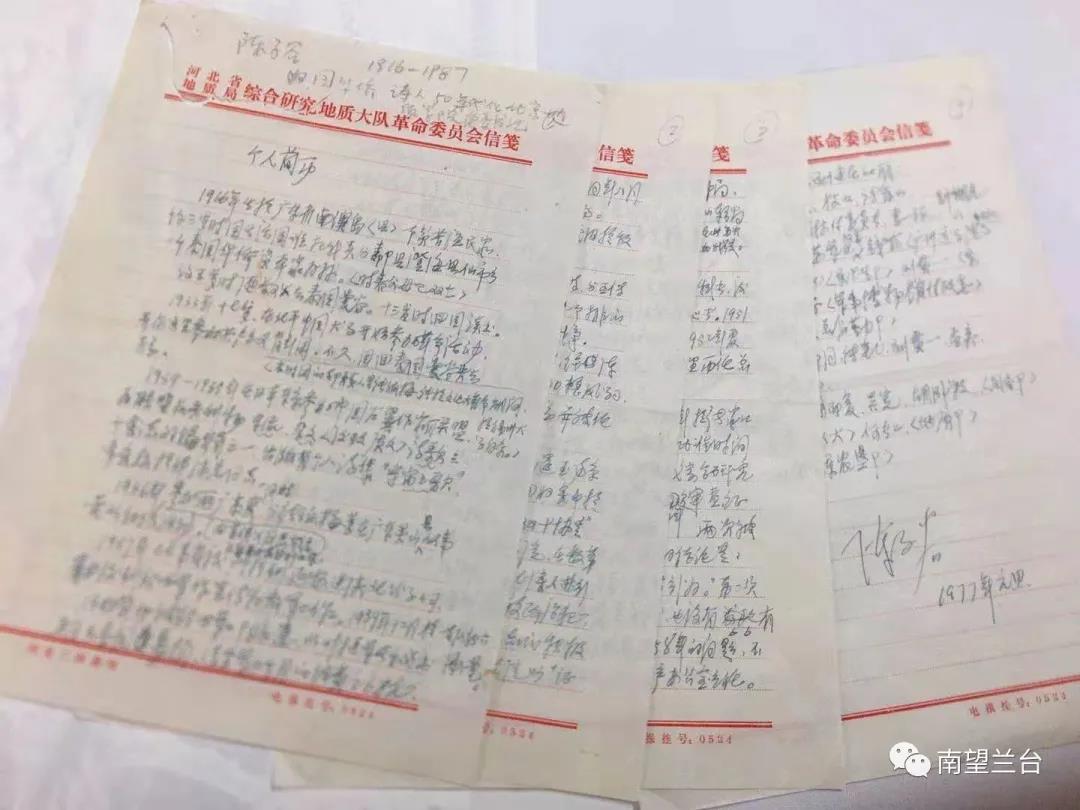 陈子谷1977年元旦留下的《个人简历》手迹档案