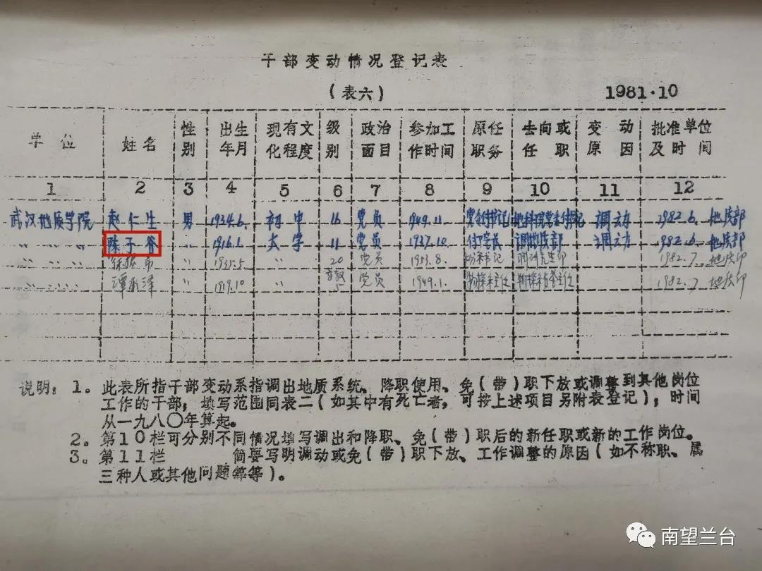 1980年6月,为加强武汉地院党委的领导,开创安定团结的政治局面,地质部党组决定并征得湖北省委同意后,特委派北京地质学院创校元勋、时任地质部教育司副司长的陈子谷下沉到武汉地质学院参加院党委工作,担任武汉地院副院长,统一认识,安稳人心,团结师生,力争把武汉地质学院办成名副其实的全国重点大学。