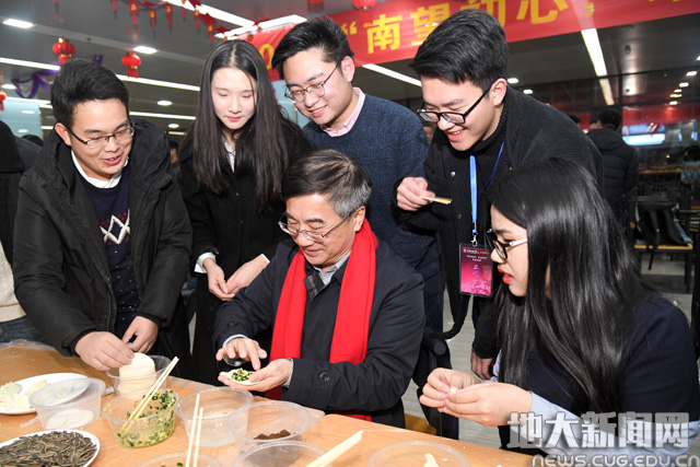 在年俗嘉年华中,校长王焰新院士与师生一起包“幸运红糖饺”,迎接新年的到来 张玉贤摄