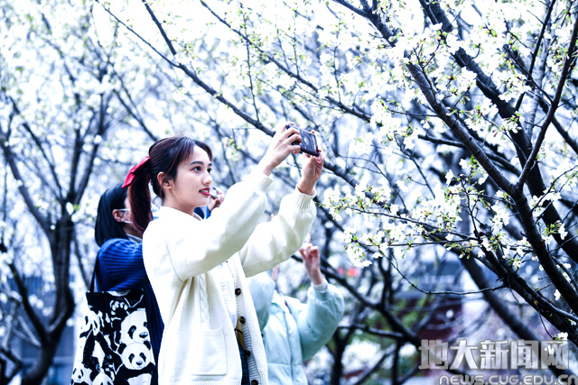 学子们徜徉在樱花盛开的校园 张玉贤摄