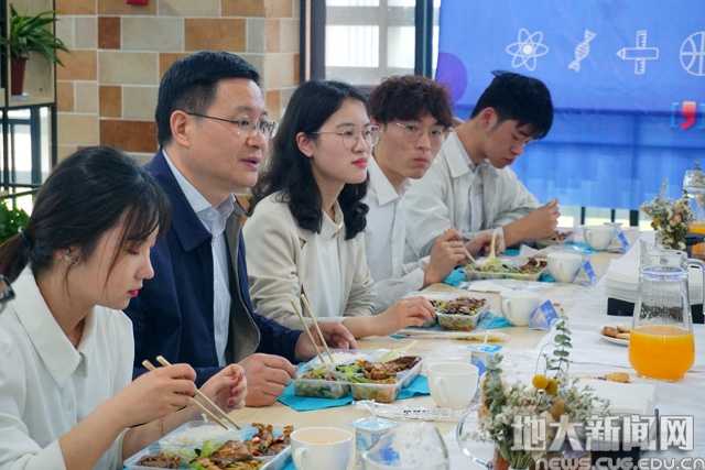 南望山校区的师生午餐会上充满了欢声笑语,气氛十分融洽。同学们分享了“学四史”的体会,并提出了学习方法、专业选择、职业规划等方面的困惑,老师们一一解答。“今天这个头儿开得很好,我们要把师生午餐会继续办下去。希望同学们今后能继续积极表达合理诉求,更好地发挥民主参与、民主管理的作用,大家都是学校的主人,咱们共同把学校办好。”黄晓玫亲切地跟同学们说道。