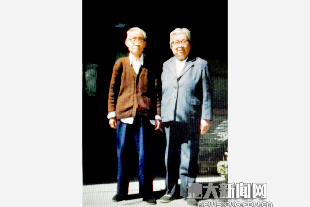 高元贵来校看望袁见齐、杨遵仪院士后一同在家属区漫步
