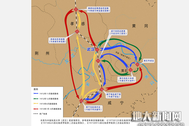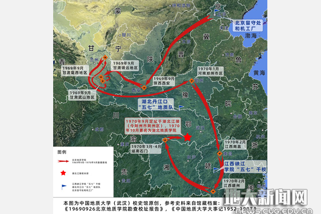 湖北地质学院省内选址示意图(校史馆绘制)