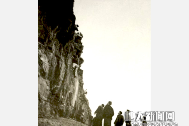 1959年,高元贵等院领导在香山观看学生攀岩训练