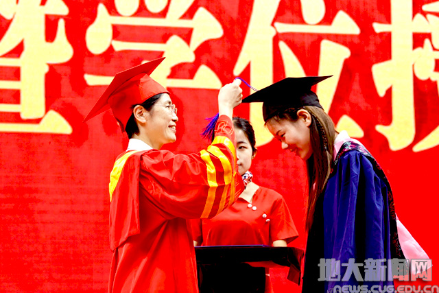 在毕业生学位授予仪式上,院士、校领导为2021届毕业生代表、2020届毕业生代表一一拨穗,并为2021届毕业生代表颁发毕业证书。