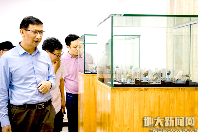 成金华一行在张雷、周琦深的带领下,参观了滇西应用技术大学珠宝学院体育馆、珠宝检测中心、宝石系样品展览中心、学院实训基地和创业工作室等地,深入了解了滇西应用技术大学珠宝学院的校园建设、师资规模、专业设置及2021年招生就业工作。