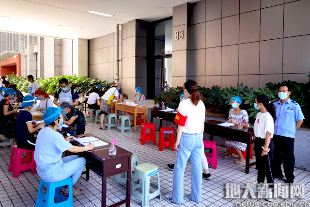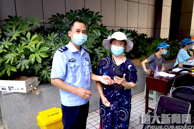 本次检测时间紧、人员多,为了快速、高效地完成核酸检测,学校各部门通力合作,群策群力落实检测取样任务。在200余位下沉党员的协助下,前来检测的人员首先通过扫码填报个人信息完成登记,随后依次在等候区、信息确认区排队,最后到达采样区按照指引进行采样并有序离开。采样区共设置10个检测点,安全保卫部在每个检测点均安排了执勤队员,避免人员聚集,确保检测现场安全有序。工作人员还开放了老人绿色通道,为退休教职工和行动不便的老人提供方便,帮助他们快速完成核酸检测。