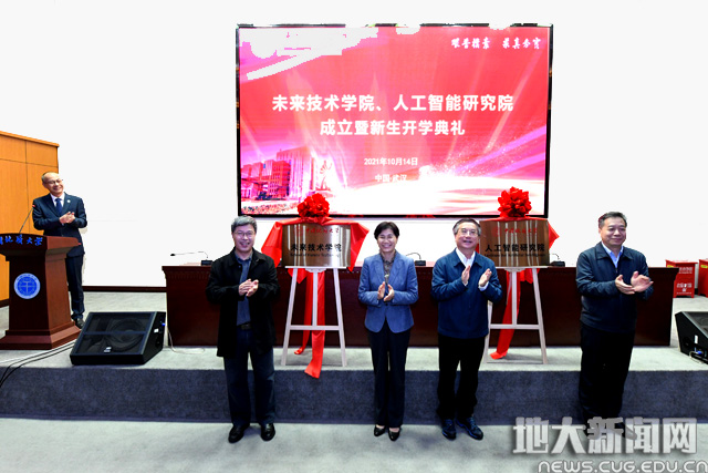 黄晓玫、王焰新、王华、周爱国为未来技术学院、人工智能研究院揭牌。