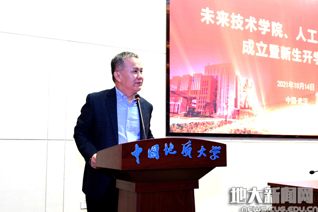 王焰新指出,当前,学科交叉融合不断发展,新一代信息技术、人工智能与地球科学深度融合,已是地球科学研究领域构建新研究方式和技术工具的必经之路。在这种大背景下,学校决定成立未来技术学院,充分利用学校在地质学、地质资源与地质工程学科上的优势,以未来技术学院为平台,建设“智能+地球科学”交叉学科方向,推动人工智能、新一代信息技术与地球科学的深度融合,发展新的地球科学研究智能化技术手段,为学校服务美丽中国、宜居地球建设提供思想、技术和方法。
