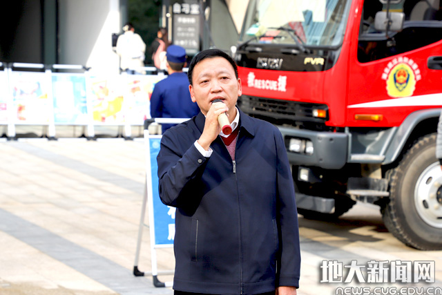 本次演练在南望山校区设总指挥部,学校党委副书记王林清担任现场总指挥,下设八个工作组有序开展消防演练保障。东湖新技术开发区左岭消防救援站对本次演练给予了大力支持,出动四台消防救援车辆及二十名队员,确保演练救援及逃生任务圆满完成。