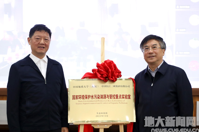 实验室主任王焰新院士与长江生态环保集团李巍副总经理一同为实验室揭牌。