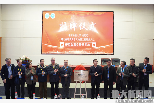 闭幕式上,唐辉明宣读了会议展板竞赛获奖者名单。湖北省地质局副局长马元和唐辉明等嘉宾,共同为湖北省地质局水文地质工程地质大队、湖北巴东地质灾害国家野外科学观测研究站“研究生联合培养基地”揭牌。