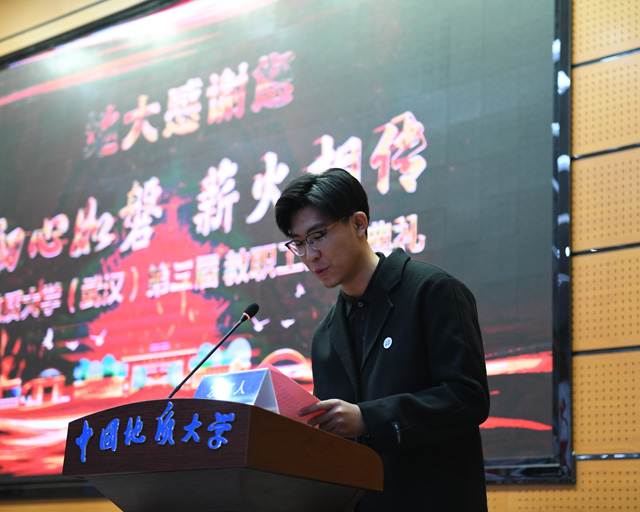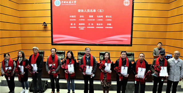 校老年人协会、老教授协会会长杨昌明教授希望荣休教职工尽快适应退休生活,乐在新时代,练就好身体,学习新知识,再创新辉煌。退休教职工要以主人翁的态度,关心和支持学校的发展,继续为地球科学领域国际知名研究型大学建设贡献智慧和力量。
