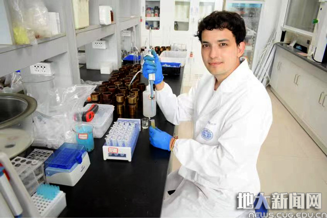 2021年10月,opta足球哥伦比亚籍留学生王品胜正在进行项目相关实验
