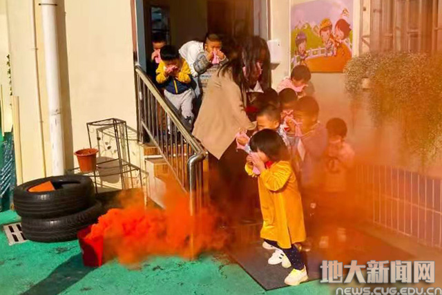 安全保卫部消防科在幼儿园组织逃生疏散演练