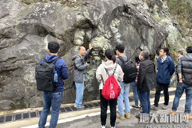 参观结束后,地化系教师登上木兰山,开展野外集体备课。大别造山带西段是全球高压-超高压变质带出露较完整的地区之一,位于该段南缘的黄陂木兰山地区构造变形强烈,变形期次清晰,并存在发育完好的低温高压特征的蓝片岩,是进行变质岩石学教学,探讨变质岩原岩及其变质作用时代,完善大别造山带碰撞演化历史的代表性地区,具有较高的地质科学研究价值。吴元保教授向大家详细介绍了大别造山带的基本形成演化历史、主要地质构造单元及木兰山一带所属的西大别高压、超高压变质岩的分布、研究意义及有关研究进展等,随后带领大家观看沿途出露的不同原岩的蓝片岩及其变质矿物组合、流体活动记录和变形特征。老师们仔细观察,就岩石中主要矿物的野外识别、不同矿物的形成过程、木兰山蓝片岩的原岩性质判断、变质年代限定、脉石英特征及其研究意义等进行了热烈的讨论,就如何将此次备课交流所得更准确地运用到专业课程教学和研究工作中进行了总结。备课交流过程中,部分教师结合地球化学学科发展趋势,就地球化学系如何布局未来研究方向、做强新的学科增长点、形成学科新优势各抒己见,参与备课的老师纷纷表示收获满满。