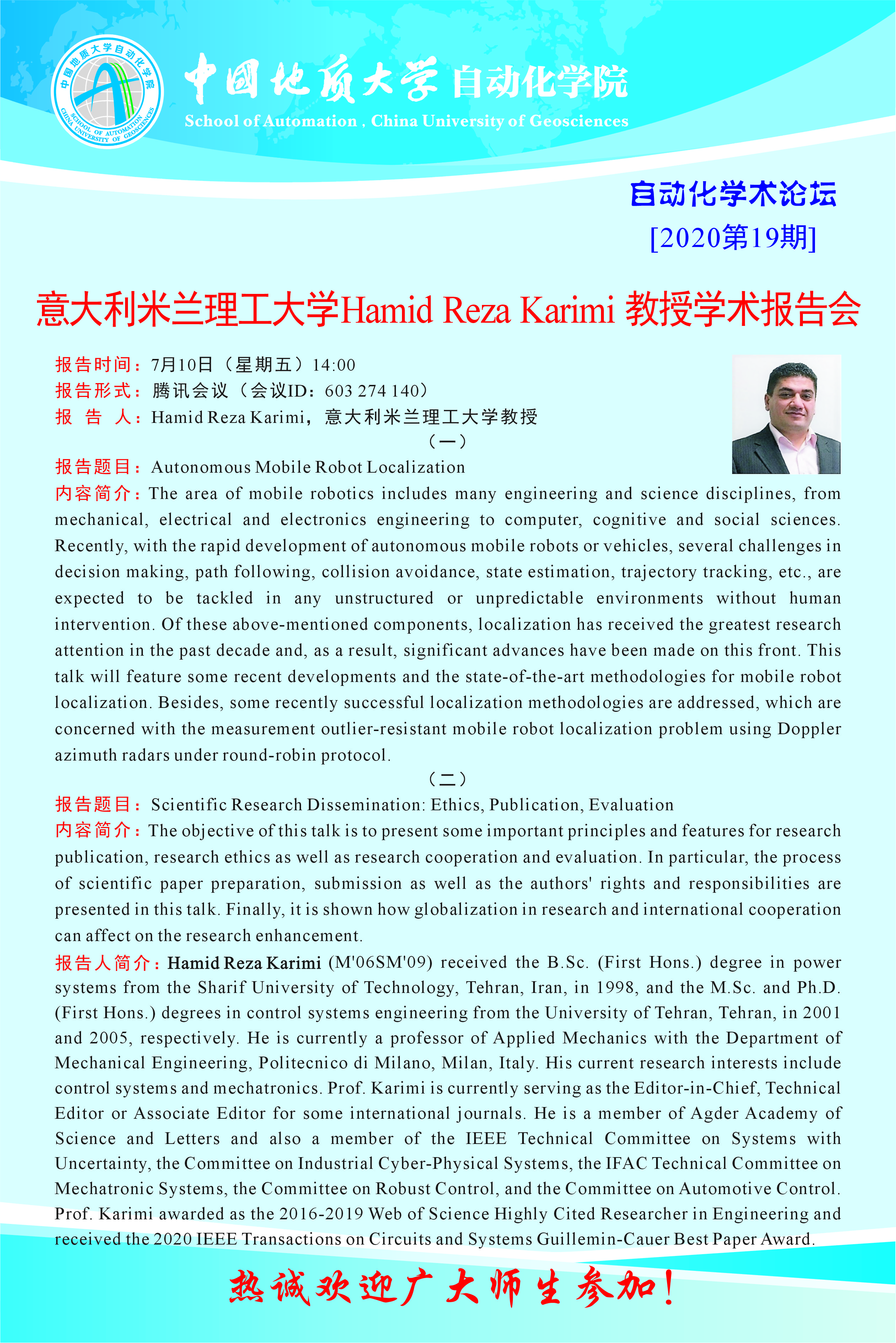 【7月10日】自动化学术论坛:意大利米兰理工大学Hamid Reza Karimi 教授线上学术报告