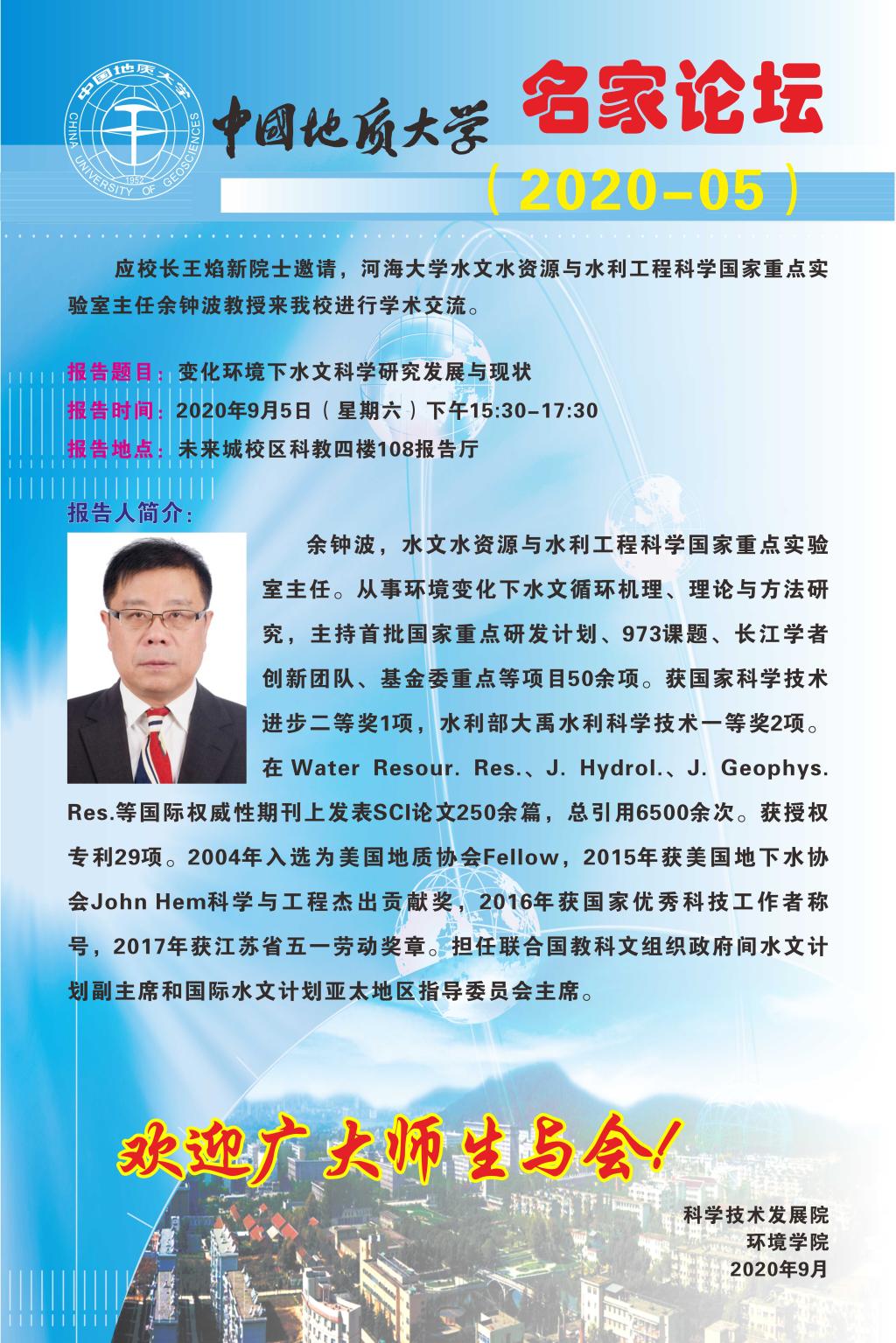 【9月5日】名家论坛:河海大学水文水资源与水利工程科学国家重点实验室主任余钟波教授学术报告