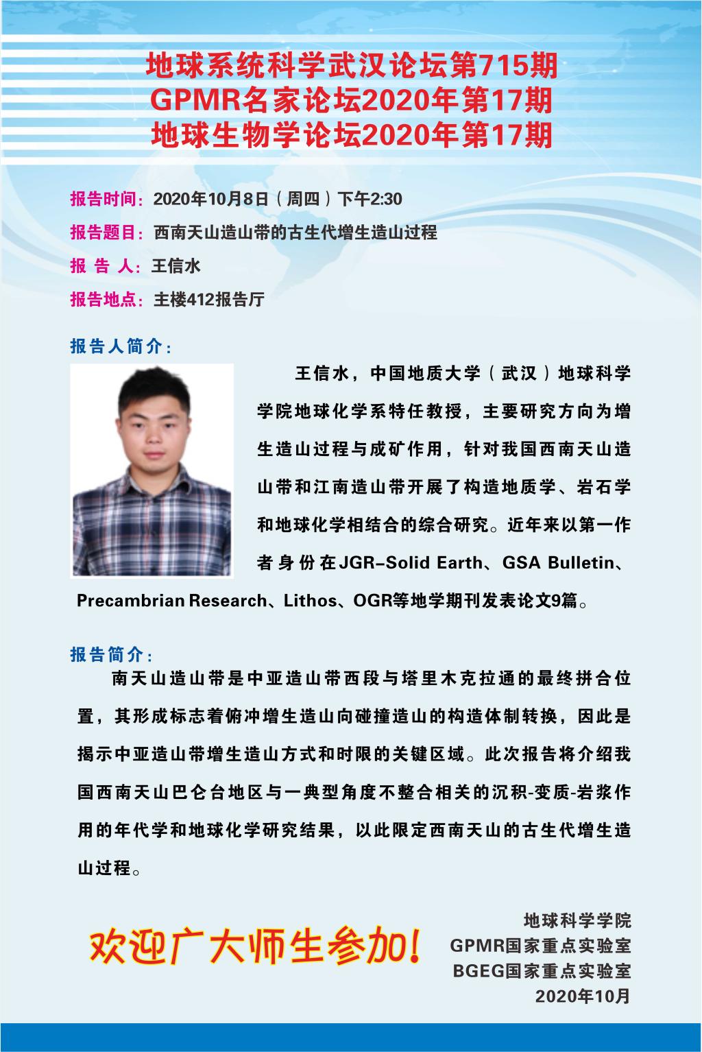 【10月8日】地球系统科学武汉论坛:西南天山造山带的古生代增生造山过程