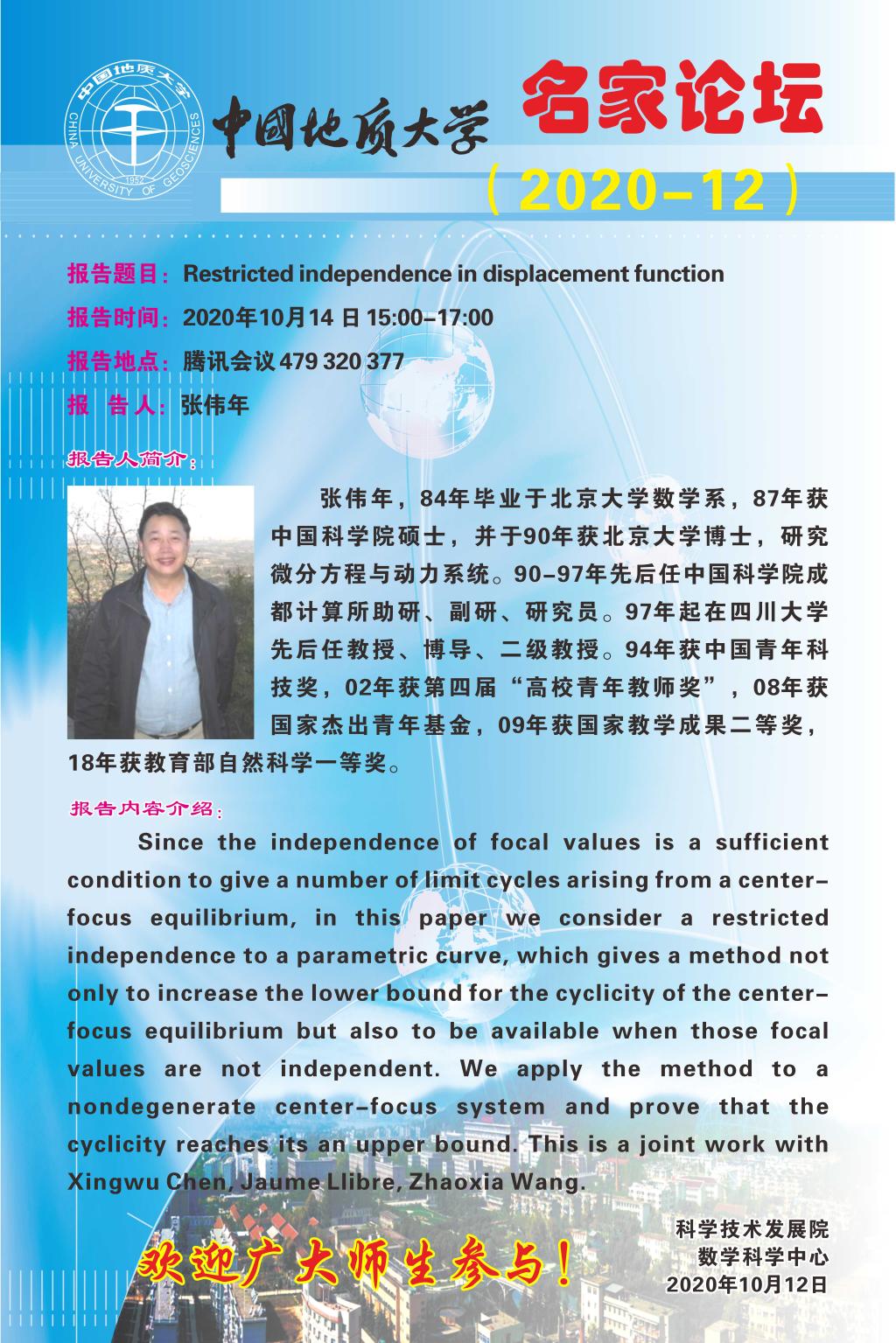 【10月14日】名家论坛:四川大学张伟年教授学术报告