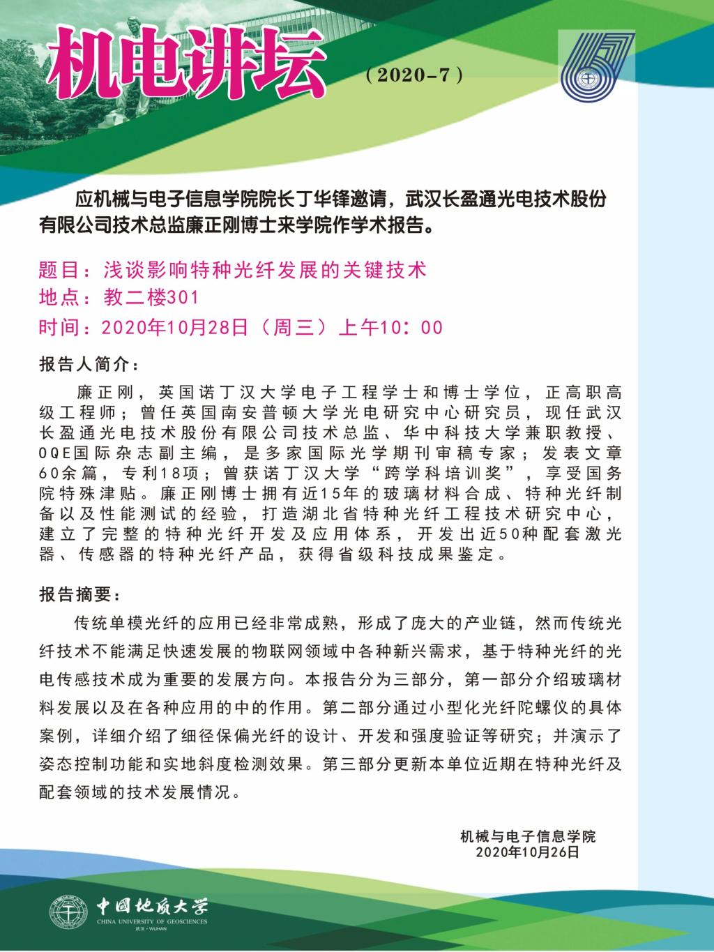 【10月28日】机电讲坛:浅谈影响特种光纤发展的关键技术