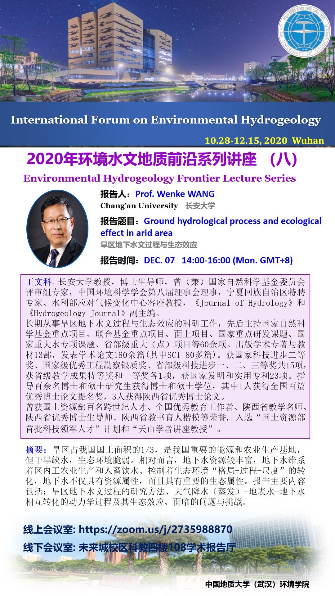 【12月7日】2020年环境水文地质前沿系列讲座(八)