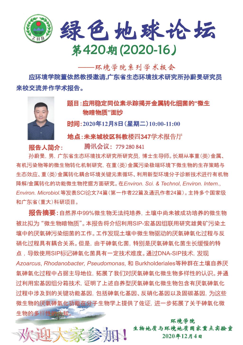 【12月8日】绿色地球论坛:广东省生态环境技术研究所孙蔚旻研究员学术报告
