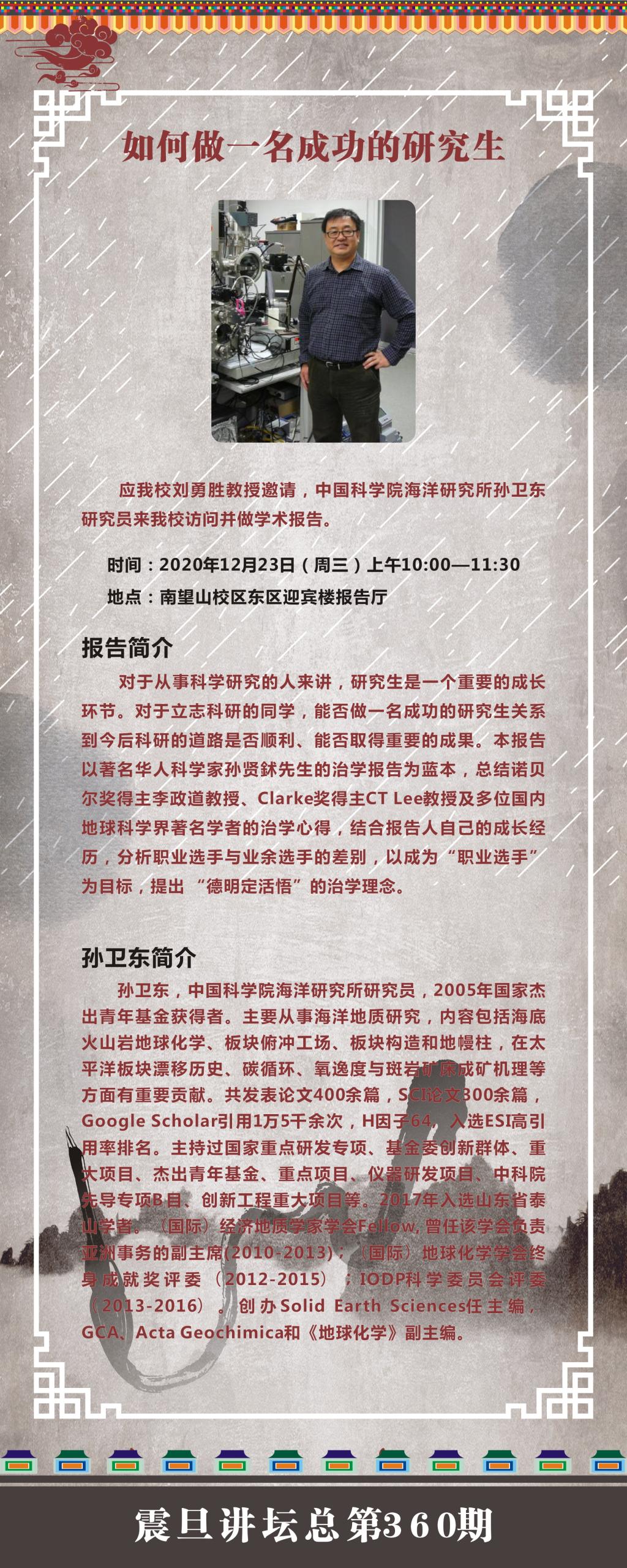 【12月23日】震旦讲坛:中国科学院海洋研究所孙卫东研究员学术报告