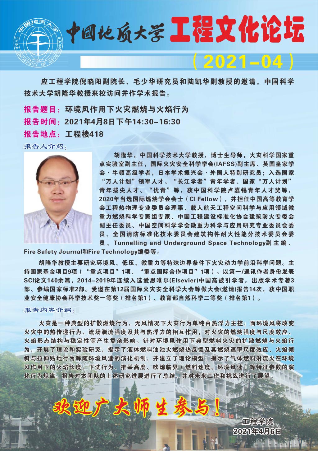 【4月8日】工程文化论坛:中国科学技术大学胡隆华教授学术报告