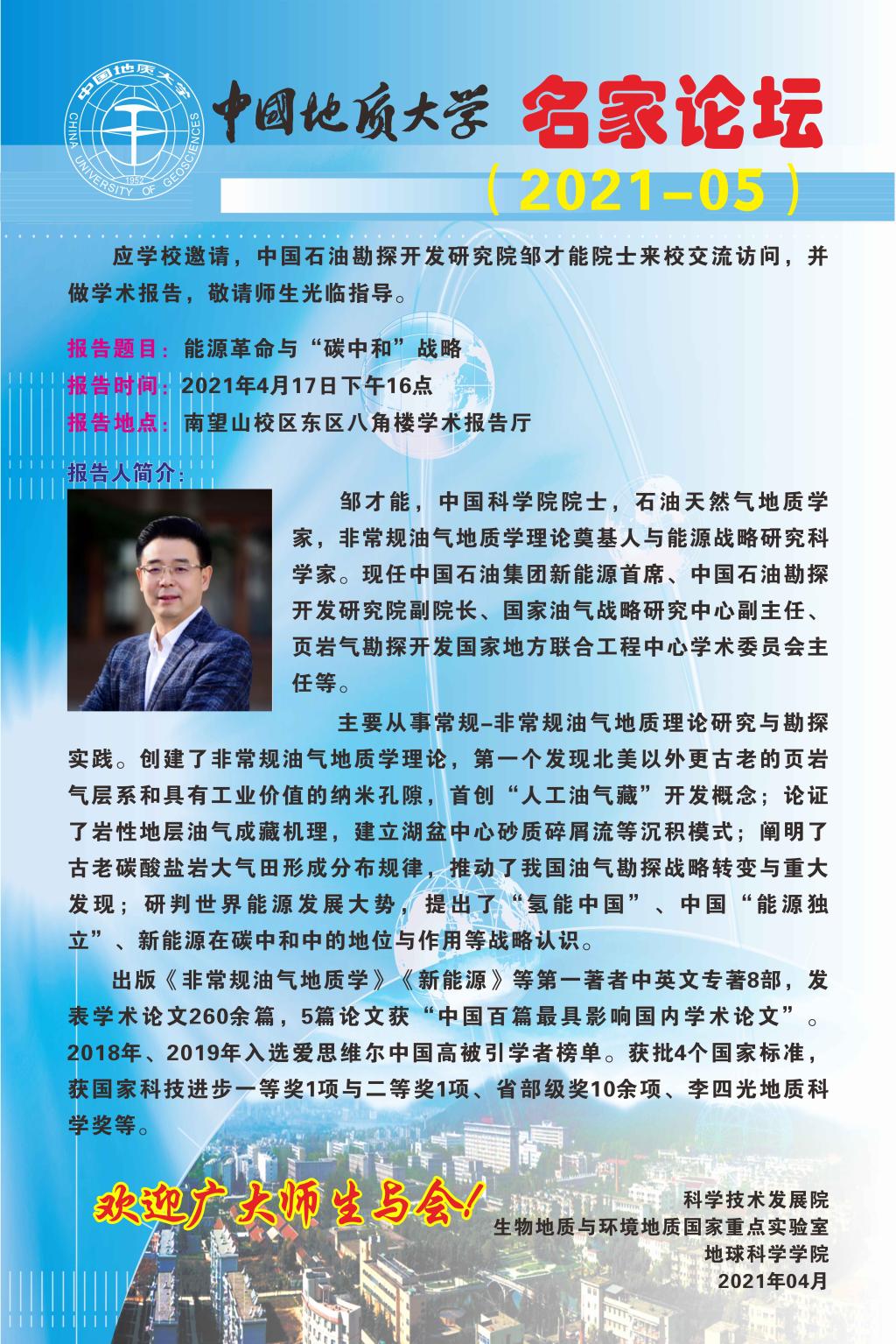 【4月17日】名家论坛:中国石油勘探开发研究院邹才能院士学术报告