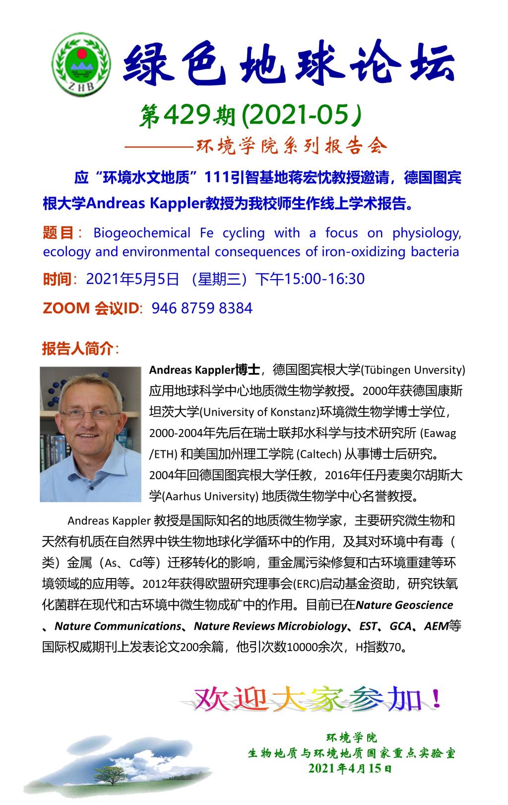 【5月5日】绿色地球论坛:德国图宾根大学Andreas Kappler教授学术报告