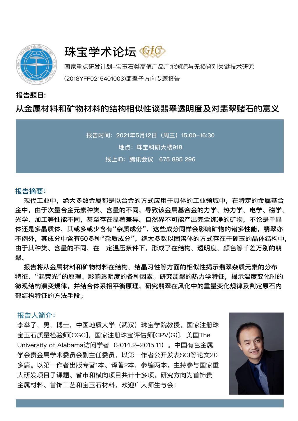 【5月12日】珠宝学术论坛:从金属材料和矿物材料的结构相似性谈翡翠透明度及对翡翠赌石的意义