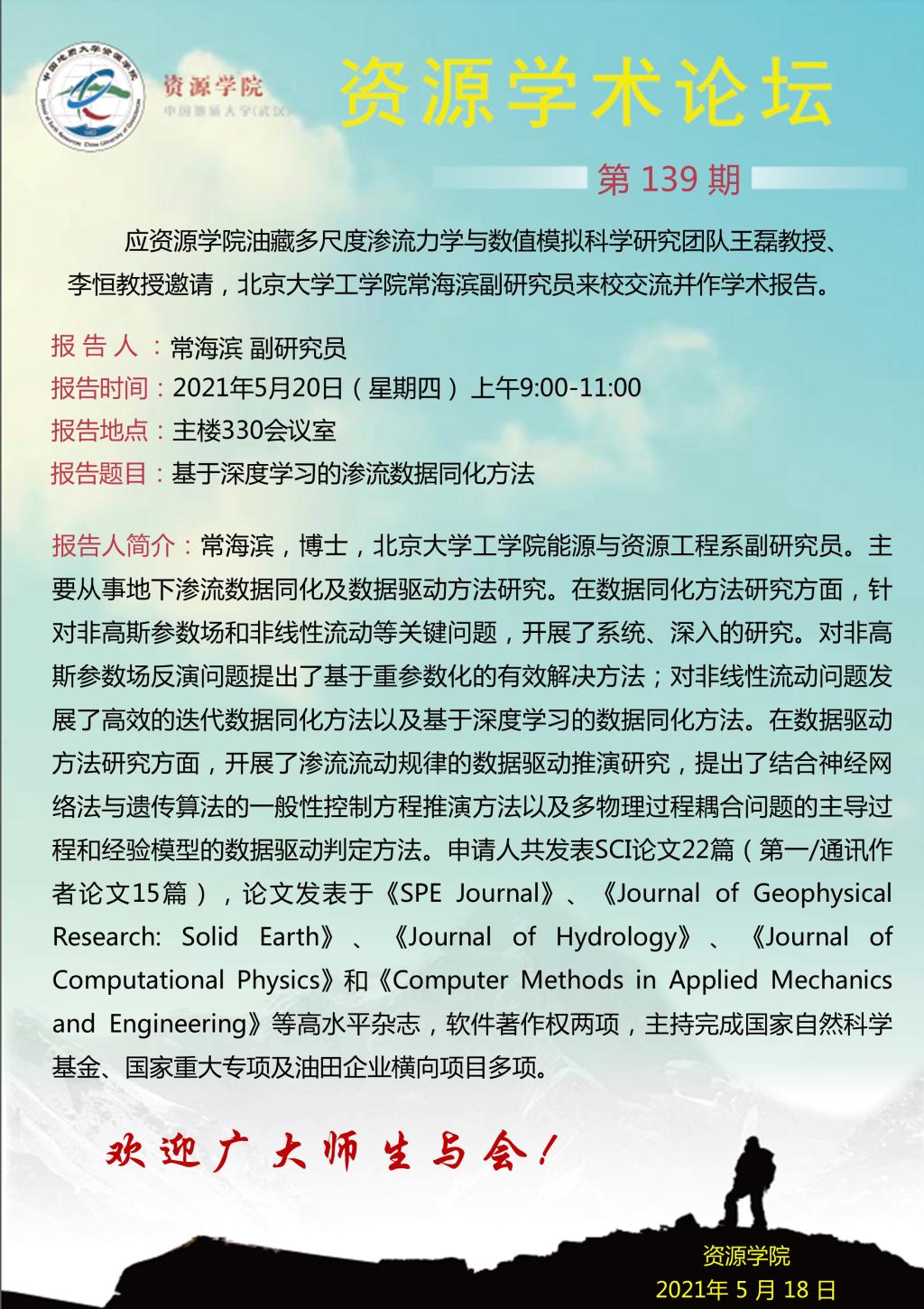 【5月20日】资源学术论坛:北京大学工学院常海滨副研究员学术报告