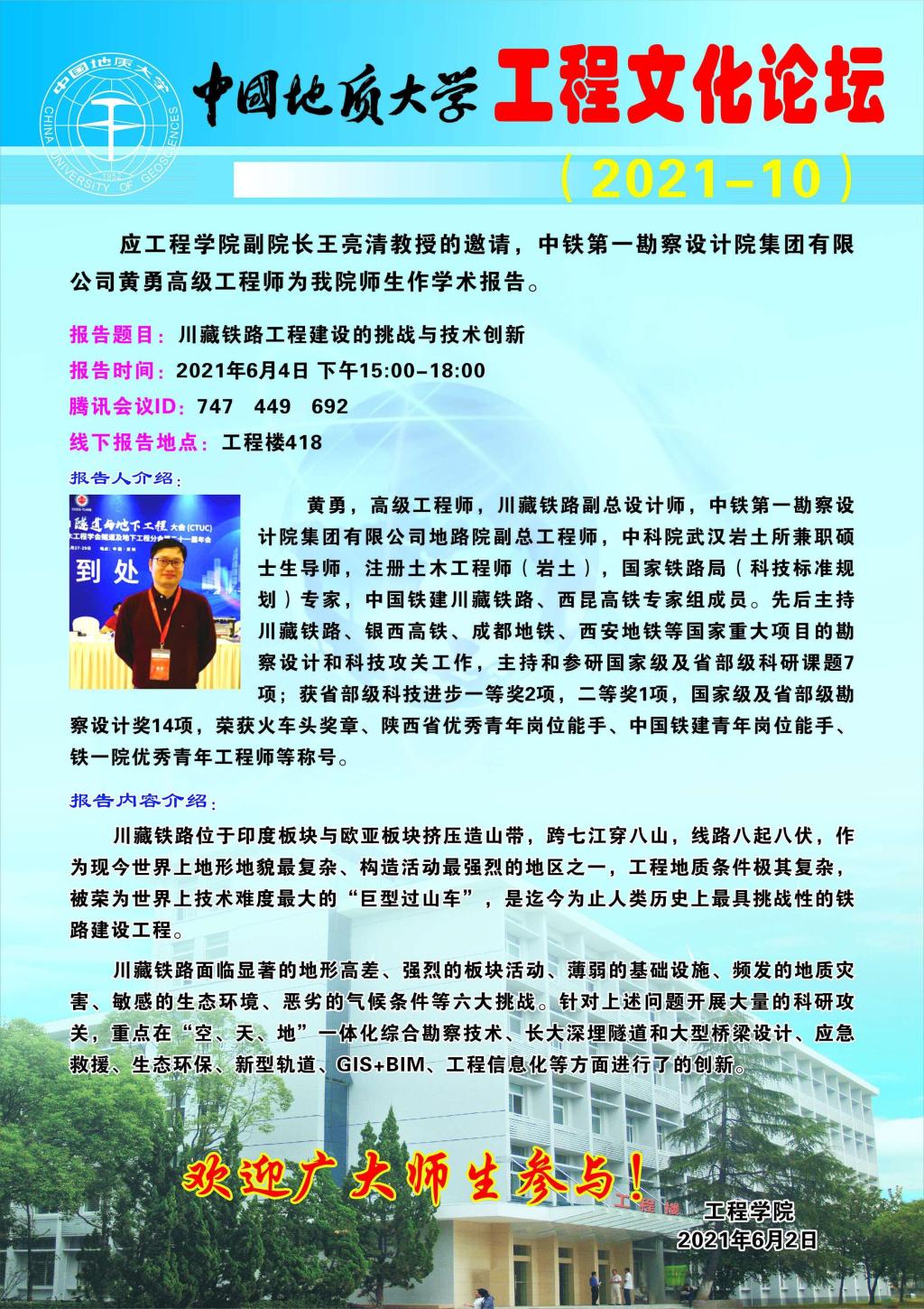 【6月4日】工程文化论坛:中铁第一勘察设计院集团有限公司黄勇高级工程师学术报告