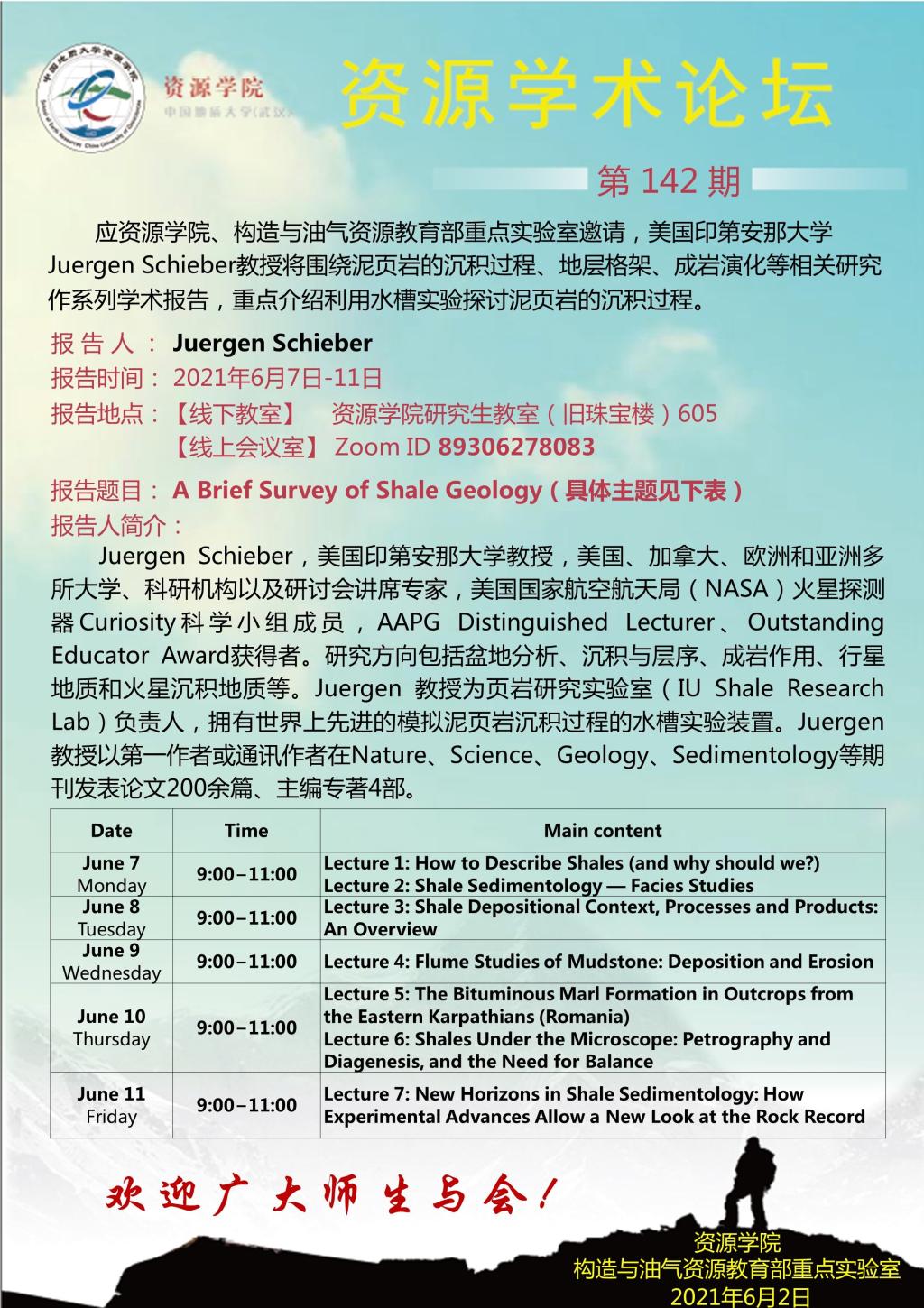 【6月7-11日】资源学术论坛:美国印第安那大学Juergen Schieber教授学术报告
