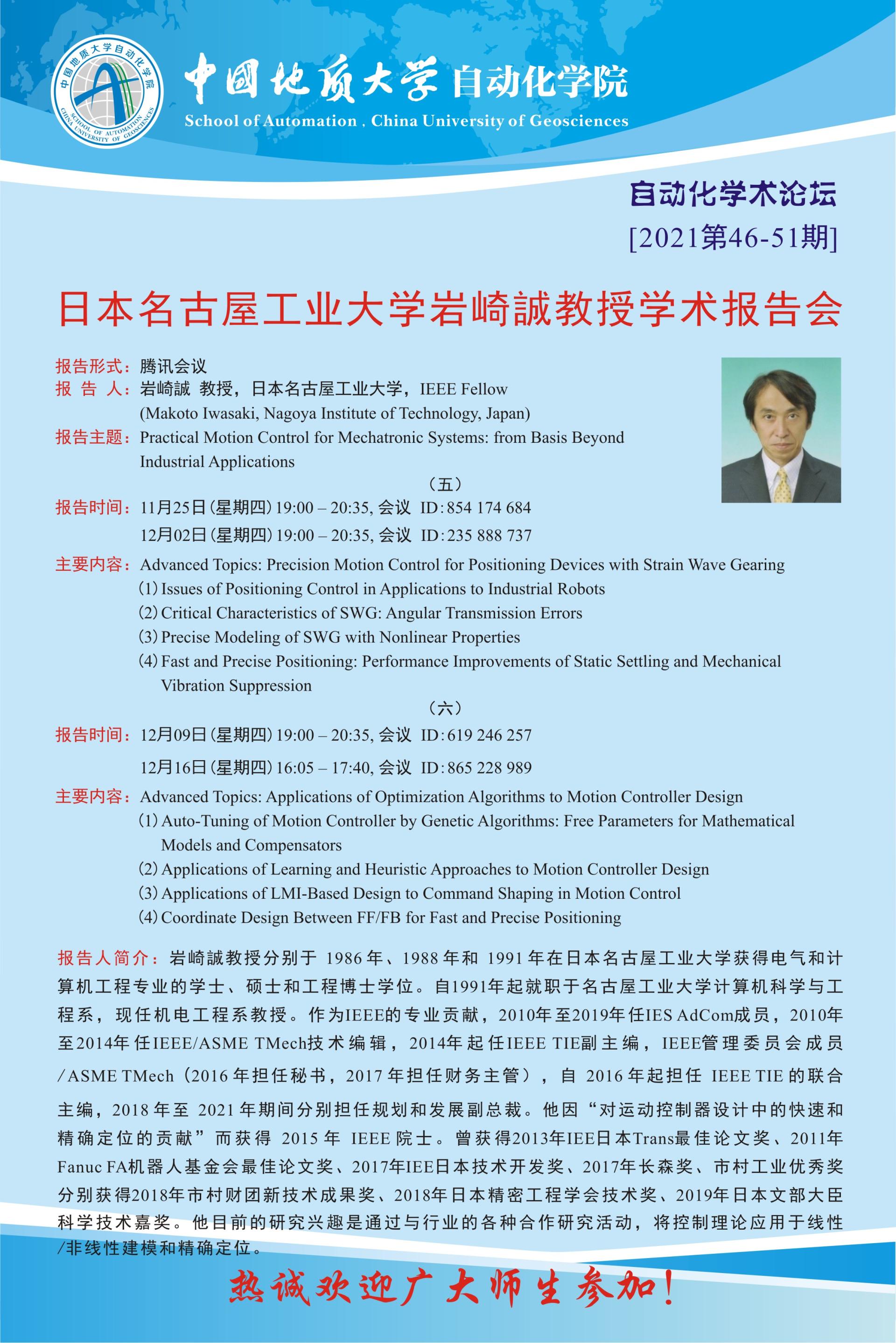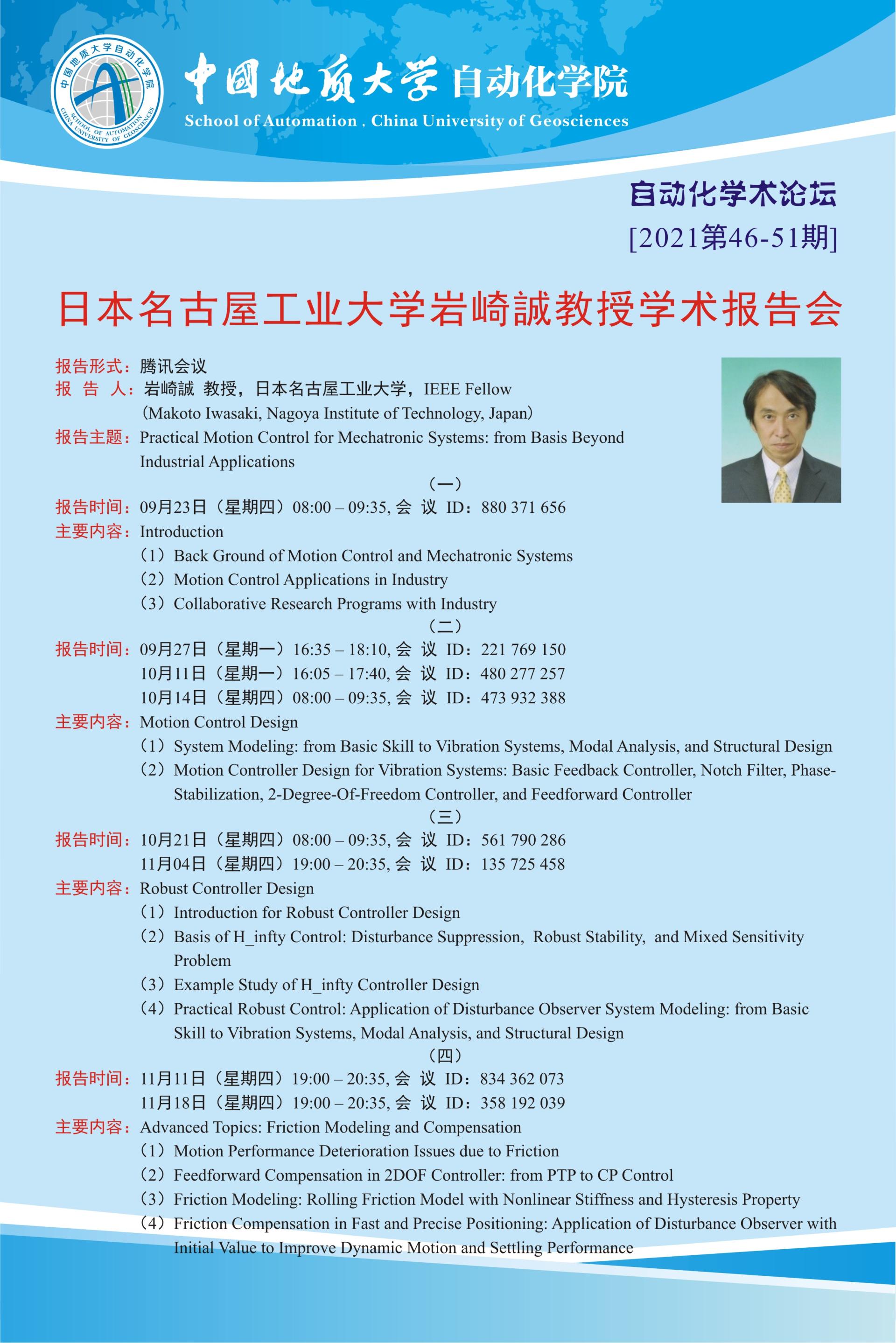 【9月23日-12月16日】自动化学术论坛:日本名古屋工业大学岩崎誠教授学术报告
