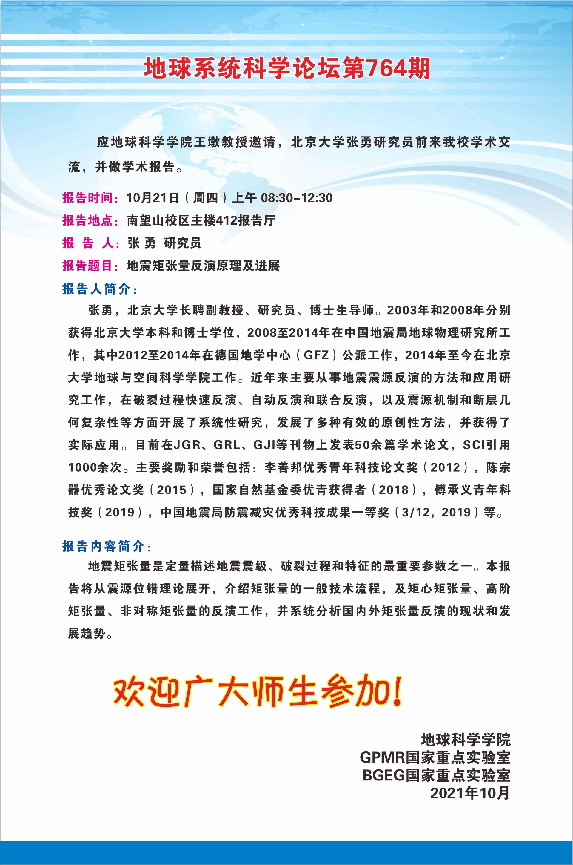 【10月21日】地球系统科学论坛:北京大学张勇研究员学术报告