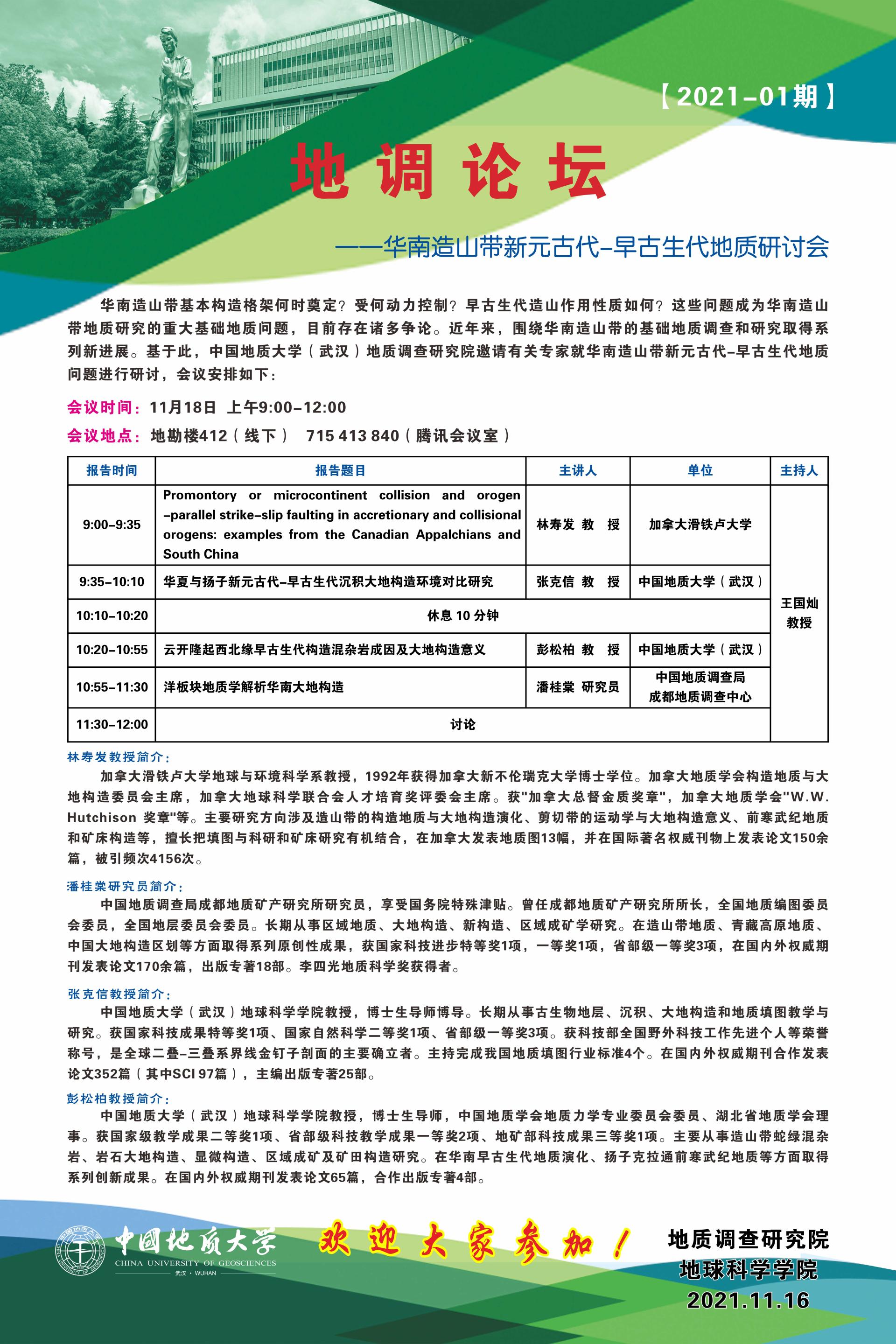 【11月18日】地调论坛:华南造山带新元古代-早古生代地质研讨会