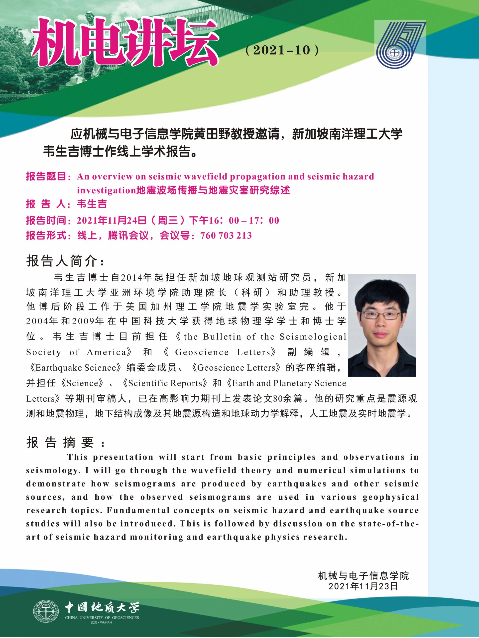 【11月24日】机电学学术论坛:新加坡南洋理工大学韦生吉博士学术报告