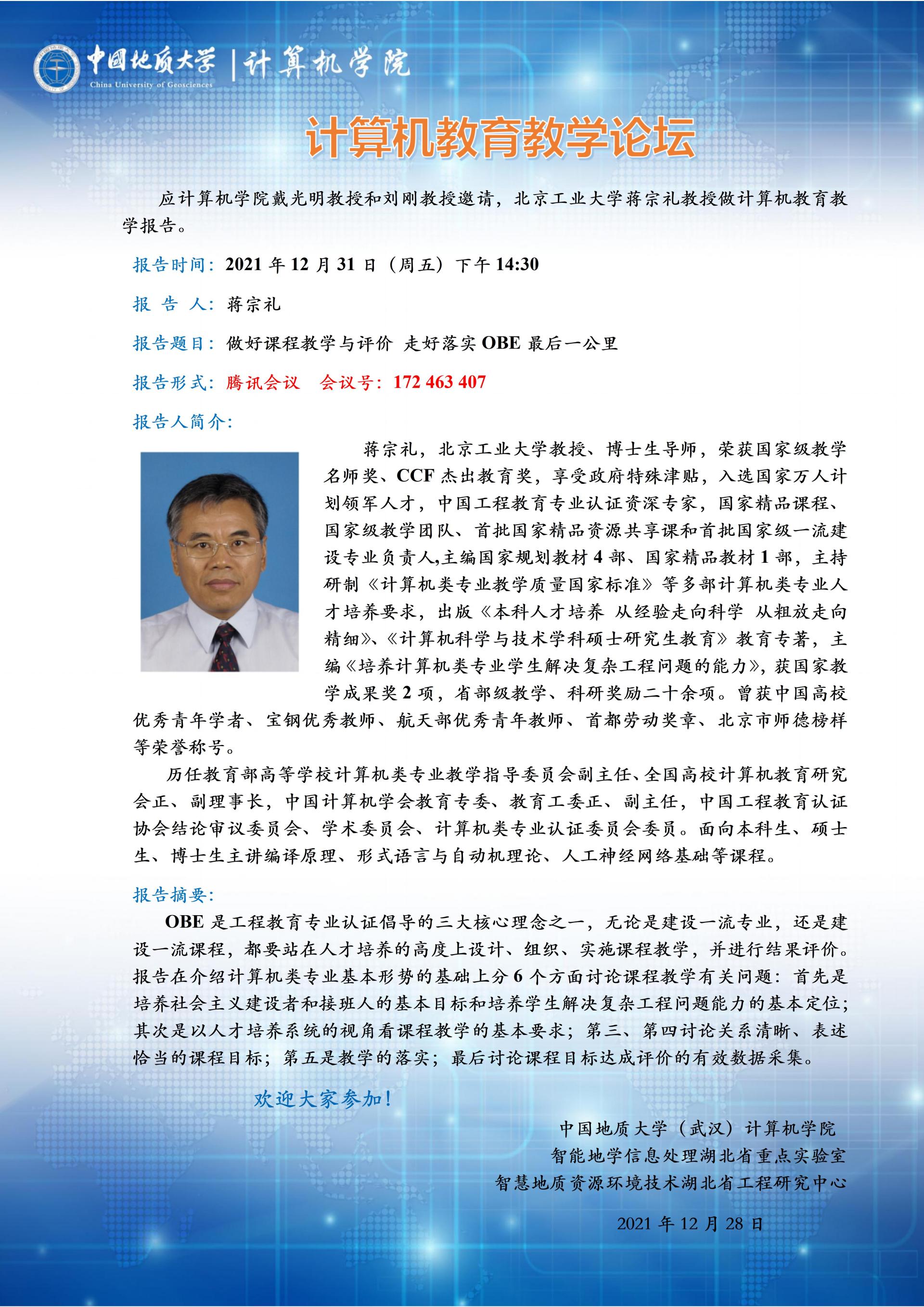 【12月31日】计算机教育教学论坛:北京工业大学蒋宗礼教授学术报告