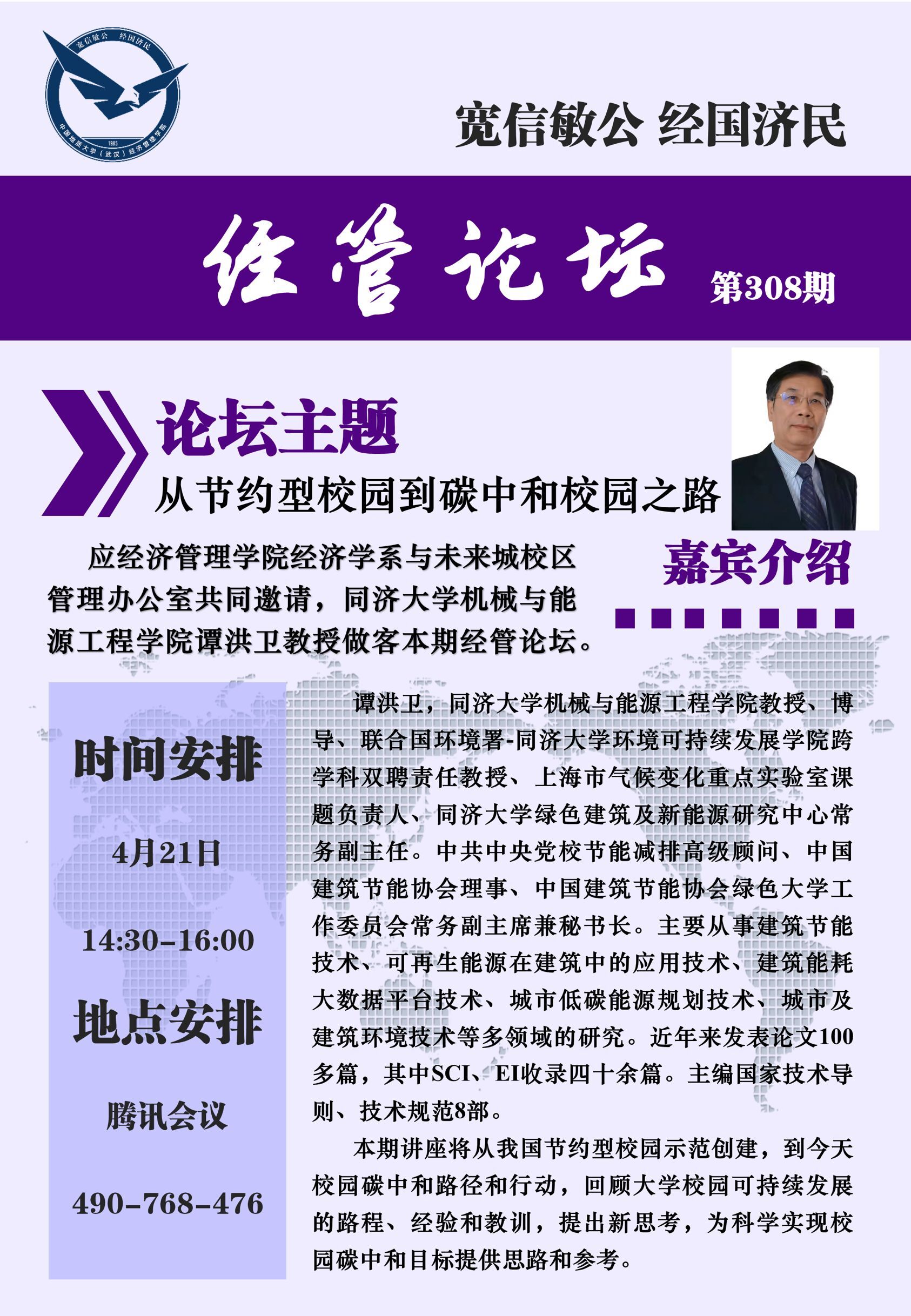 【4月21日】经管论坛:从节约型校园到碳中和校园之路