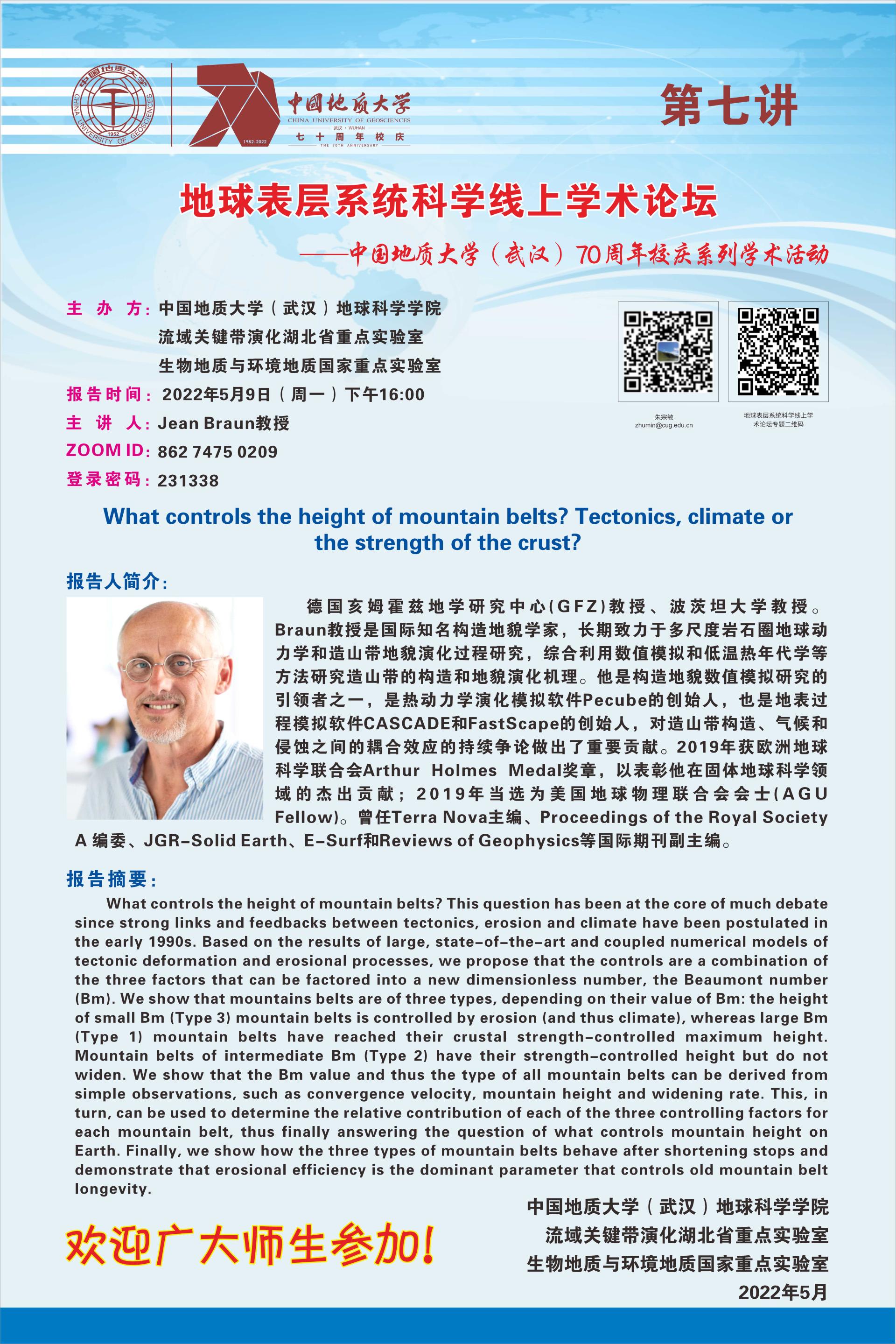 【5月9日】地球表层系统科学论坛: 德国亥姆霍兹地学研究中心(GFZ)Jean Braun教授学术报告