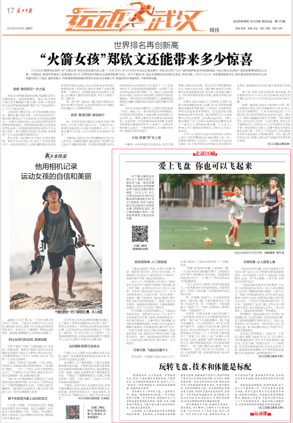 “飞盘运动既有篮球走步的规则,又运用了足球场地和足球场上人盯人的比赛战术,还采用了橄榄球的得分规则。大家可以在一起练习传接盘的游戏,也可以进行运动量很大的多人竞技,有哪项运动能让男生和女生在同一个项目中发挥同样的作用?可以说,飞盘降低了运动门槛,让男女老少都能参与进来,这应该就是这么多人一夜之间喜欢上飞盘运动的原因吧。”罗明辉说。